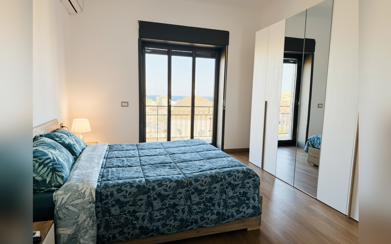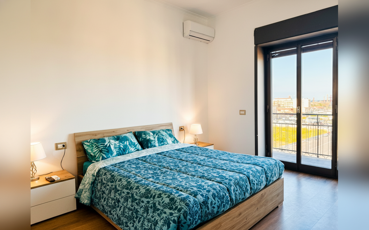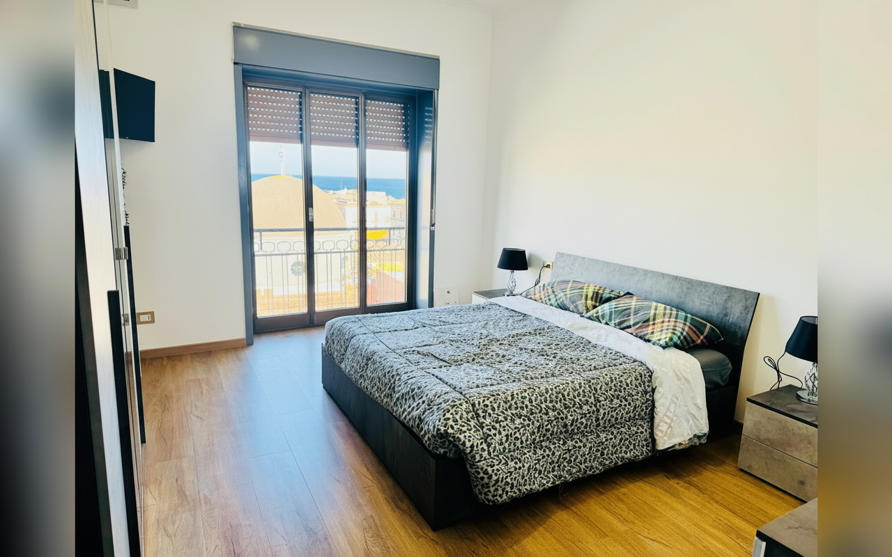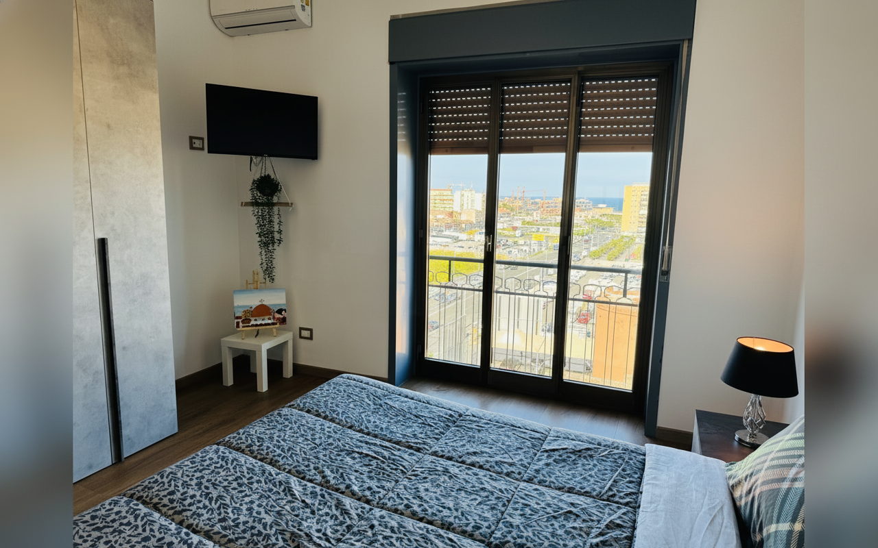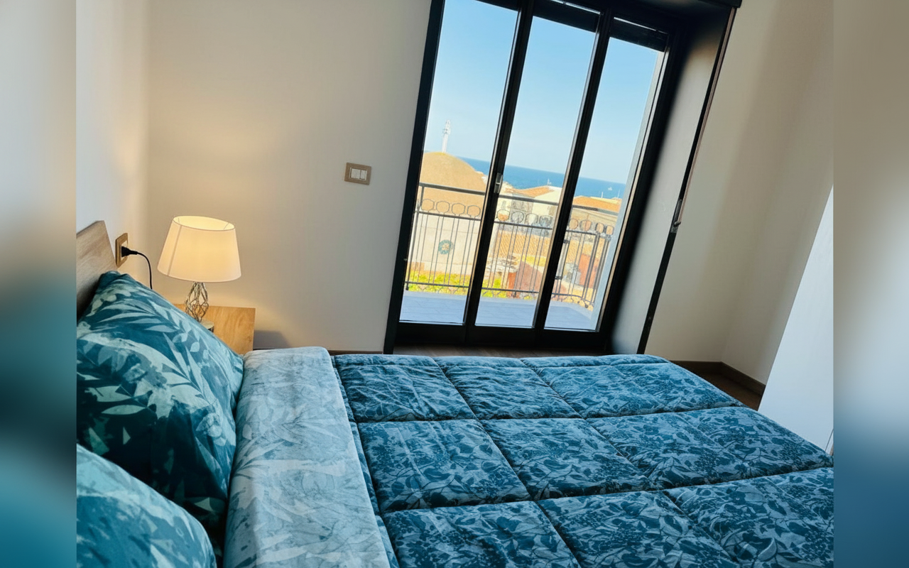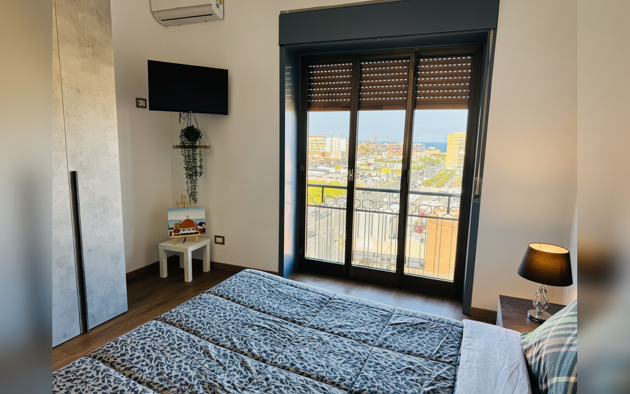 L'appartamento si sviluppa su 110 mq al sesto piano ed è composto da tre ampie camere matrimoniali, un soggiorno con divano letto e cucina completa. Ideale per gruppi o famiglie fino a 8 persone, offre spazi confortevoli e ben arredati con attenzione al dettaglio. La presenza di aria condizionata, riscaldamento, terrazza e balcone rende il soggiorno piacevole in tutte le stagioni. Perfetto per chi vuole vivere Catania da vicino, con la comodità di parcheggio gratuito e ascensore.