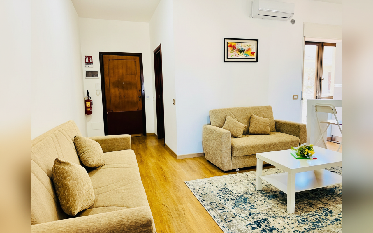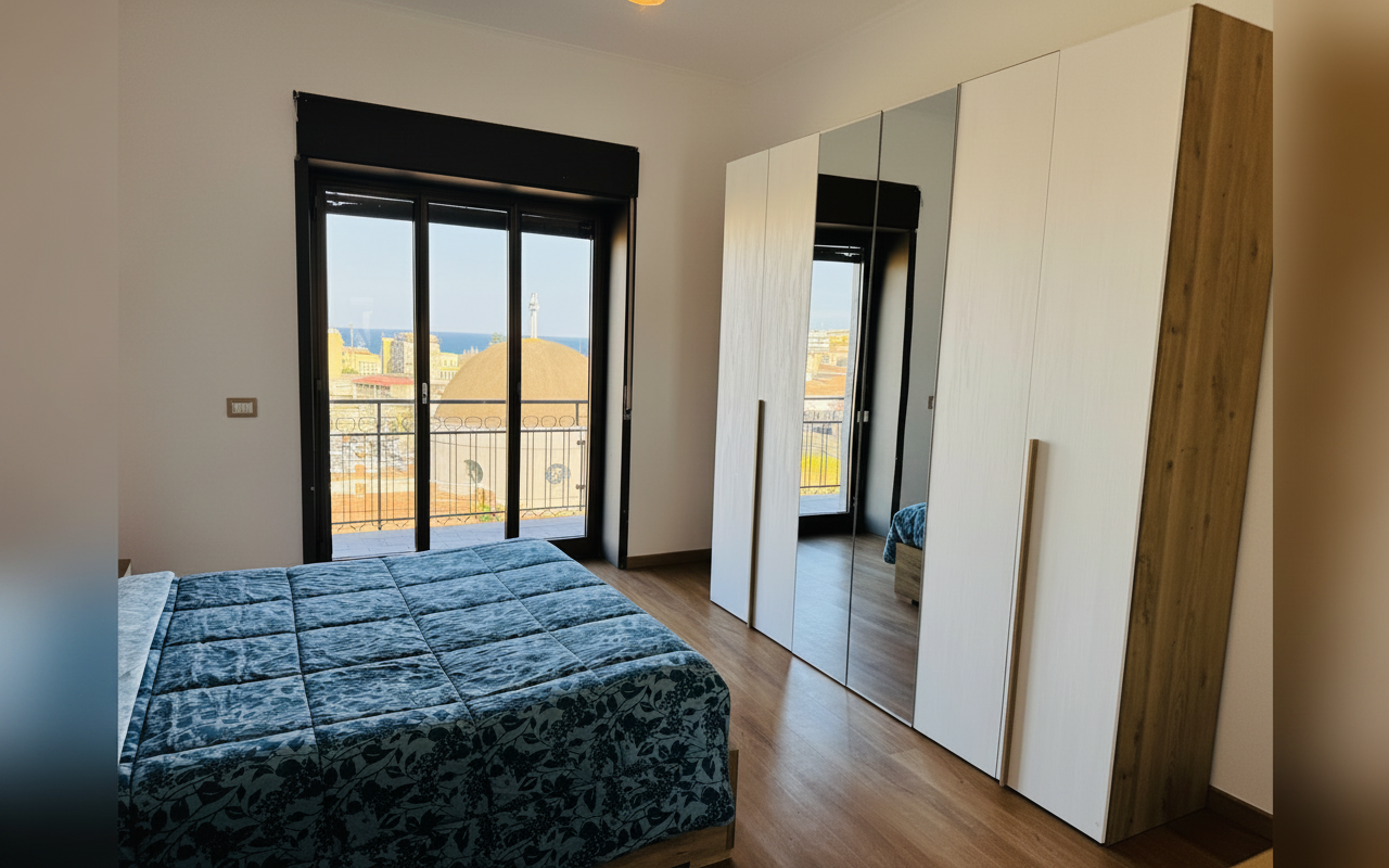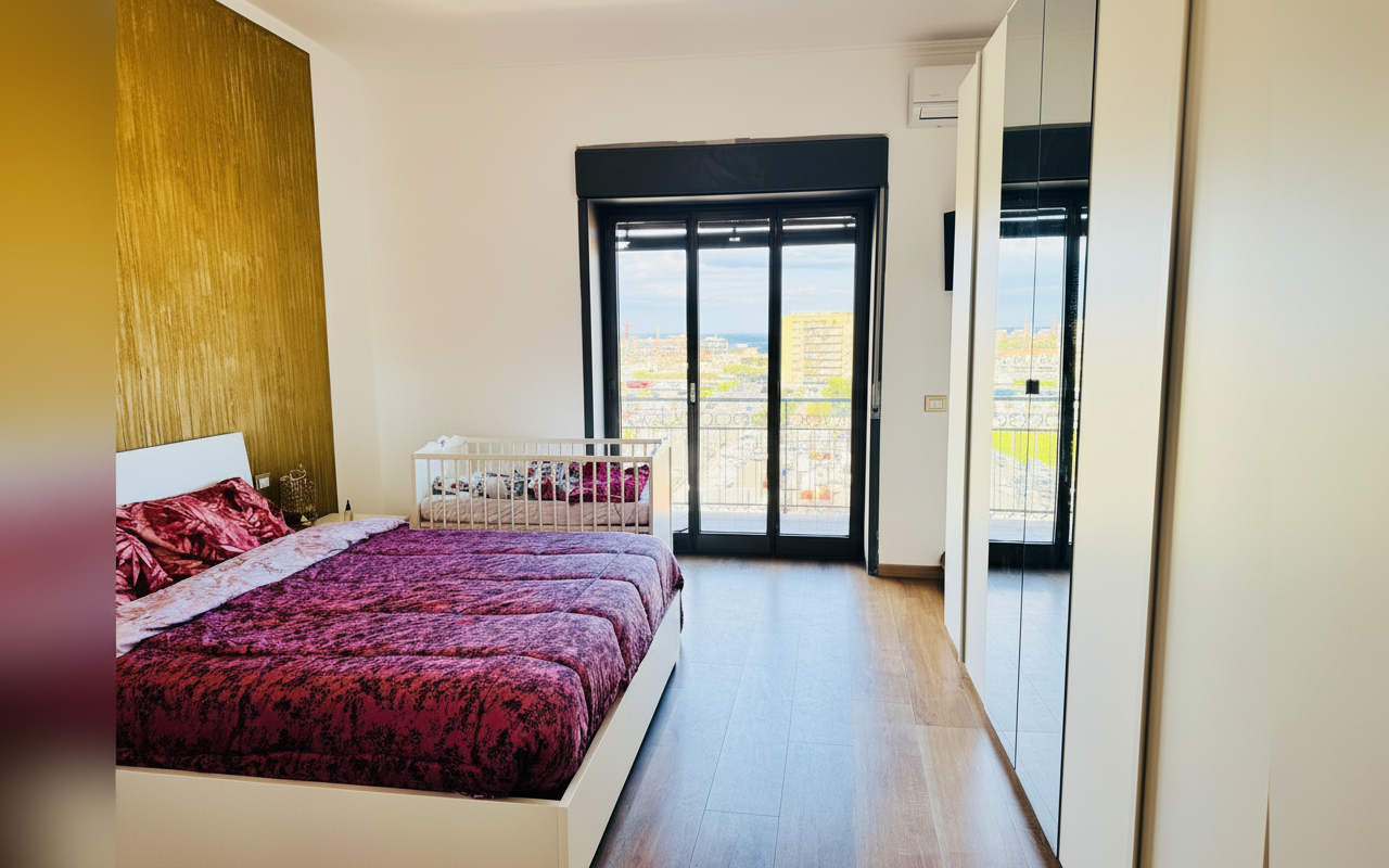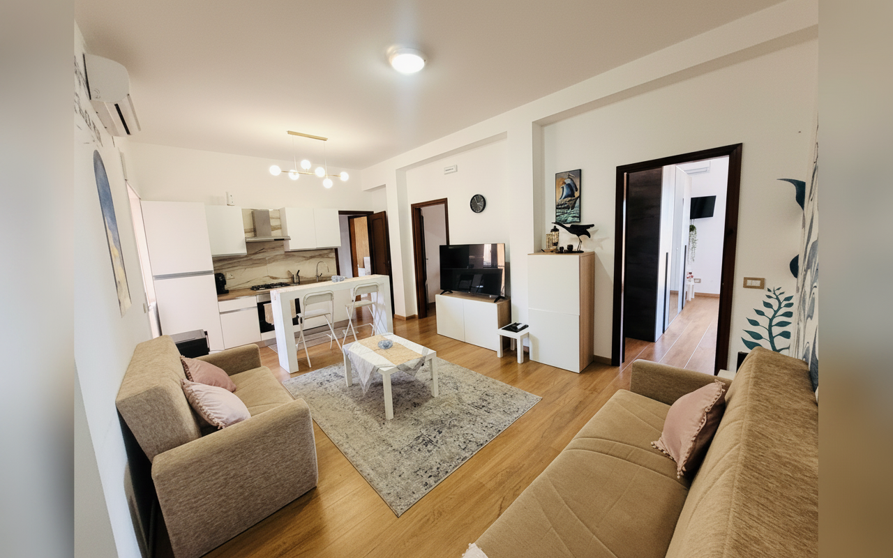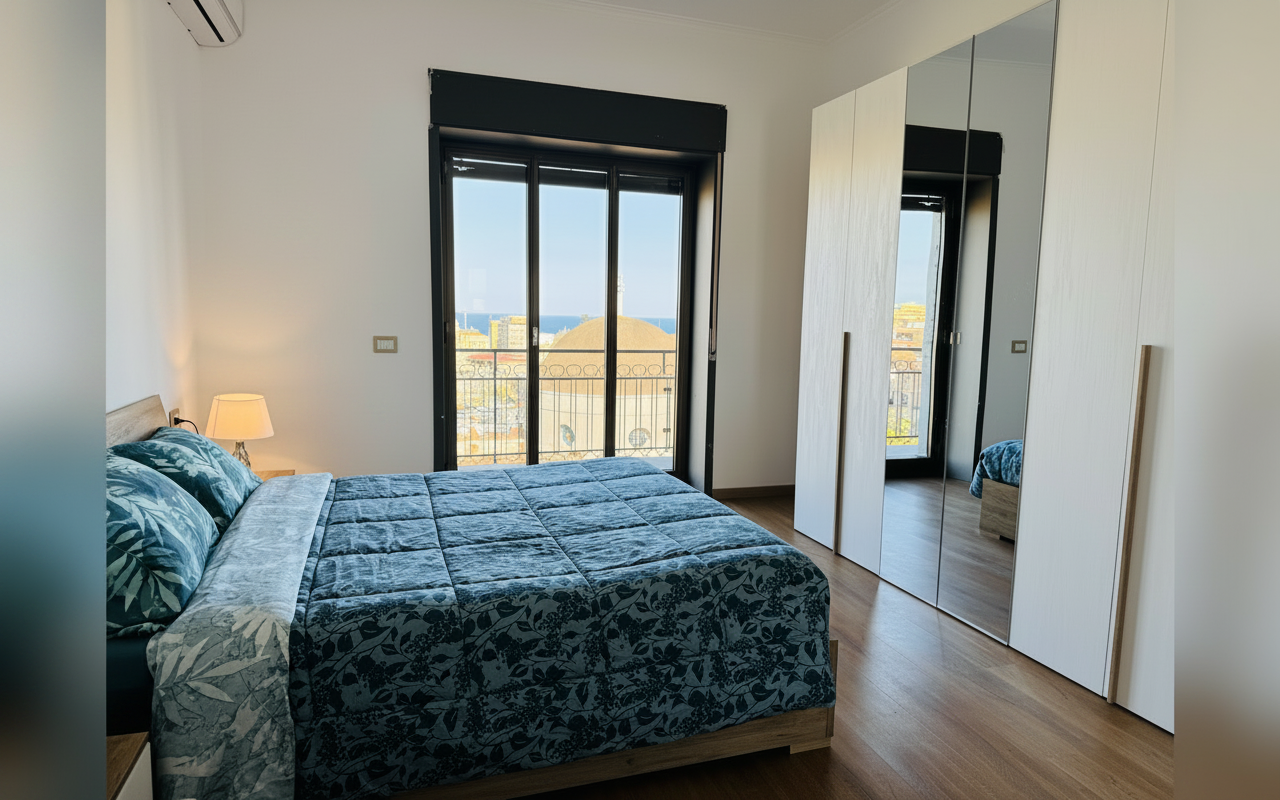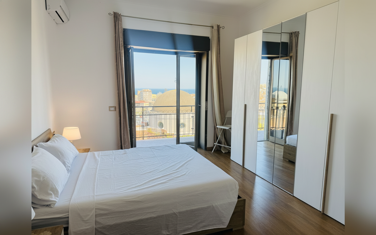 L'appartamento si sviluppa su 110 mq al sesto piano ed è composto da tre ampie camere matrimoniali, un soggiorno con divano letto e cucina completa. Ideale per gruppi o famiglie fino a 8 persone, offre spazi confortevoli e ben arredati con attenzione al dettaglio. La presenza di aria condizionata, riscaldamento, terrazza e balcone rende il soggiorno piacevole in tutte le stagioni. Perfetto per chi vuole vivere Catania da vicino, con la comodità di parcheggio gratuito e ascensore.