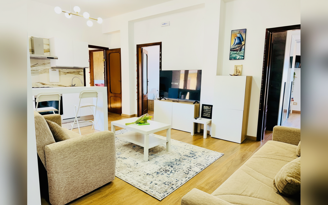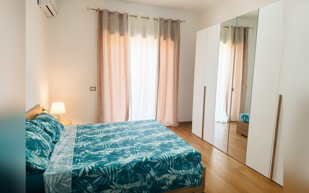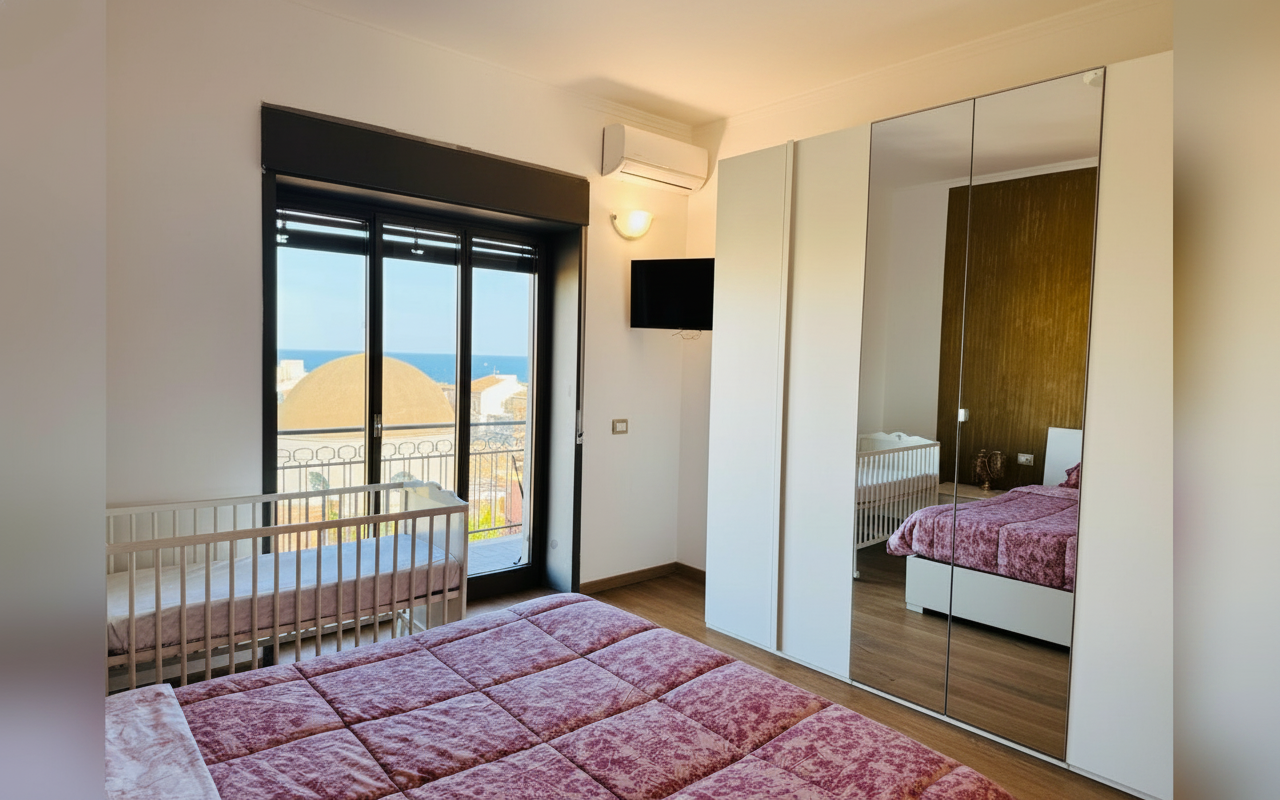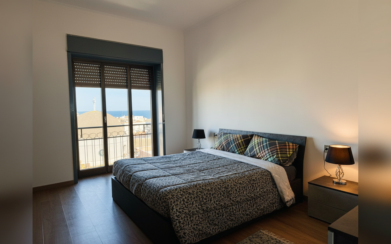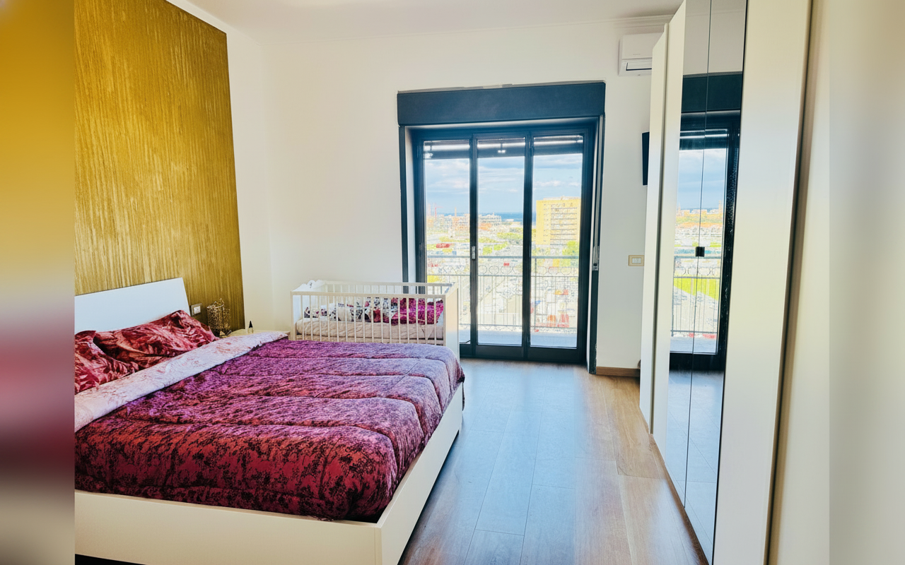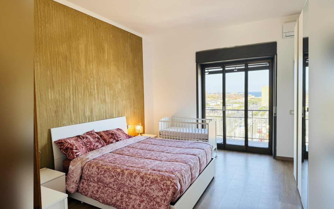 L'appartamento si sviluppa su 110 mq al sesto piano ed è composto da tre ampie camere matrimoniali, un soggiorno con divano letto e cucina completa. Ideale per gruppi o famiglie fino a 8 persone, offre spazi confortevoli e ben arredati con attenzione al dettaglio. La presenza di aria condizionata, riscaldamento, terrazza e balcone rende il soggiorno piacevole in tutte le stagioni. Perfetto per chi vuole vivere Catania da vicino, con la comodità di parcheggio gratuito e ascensore.