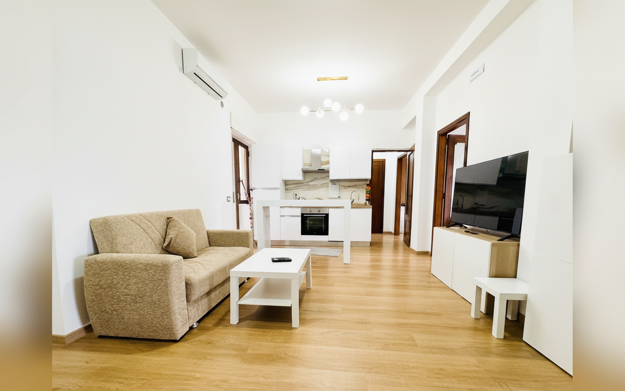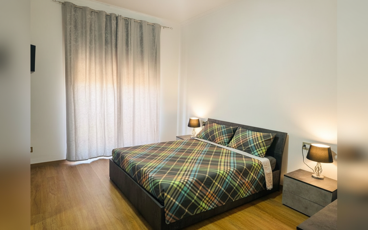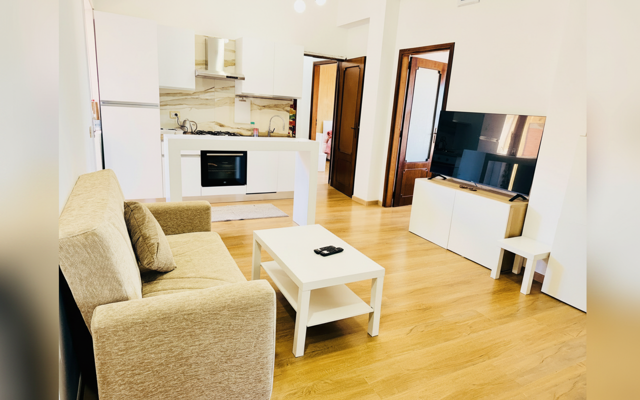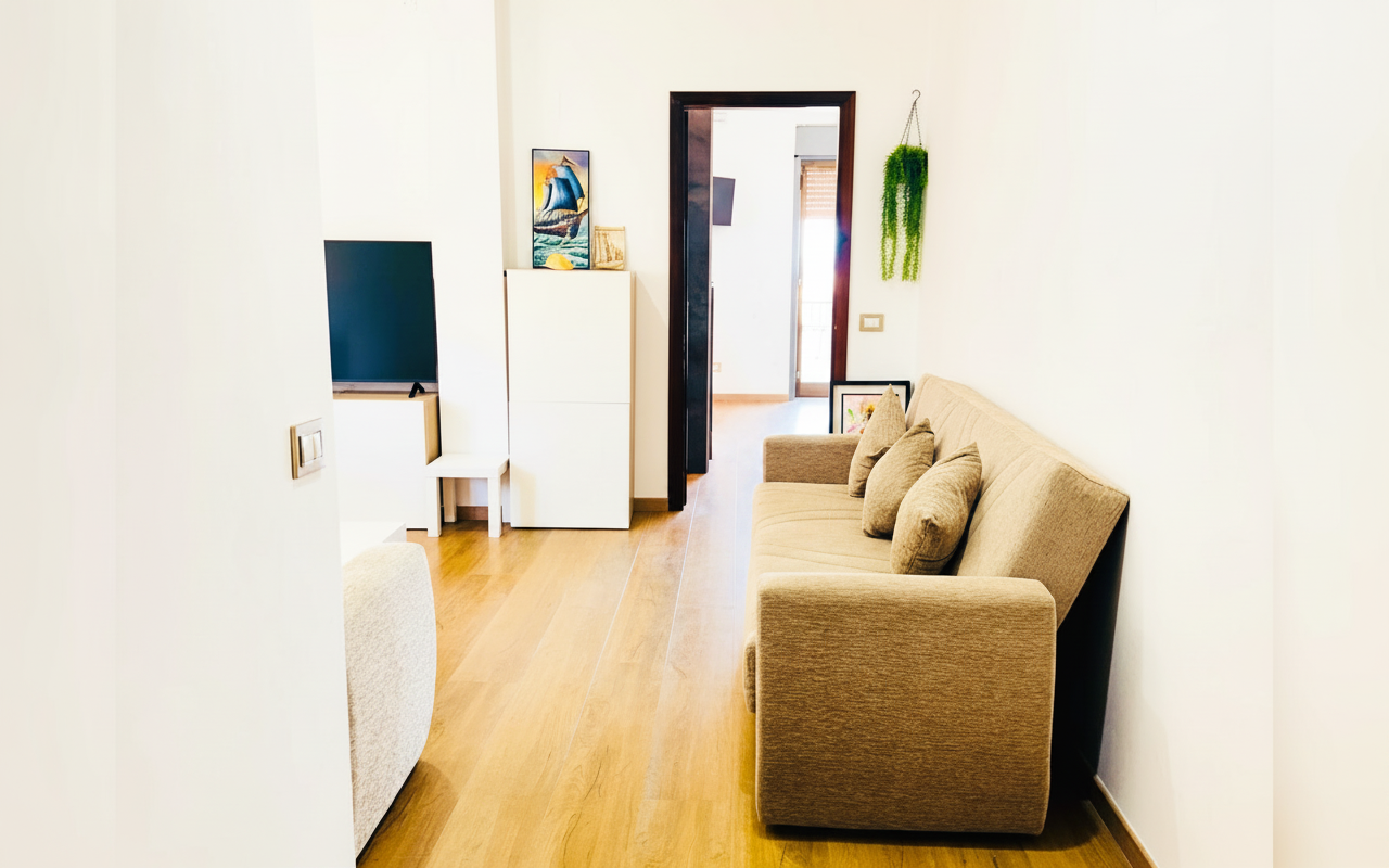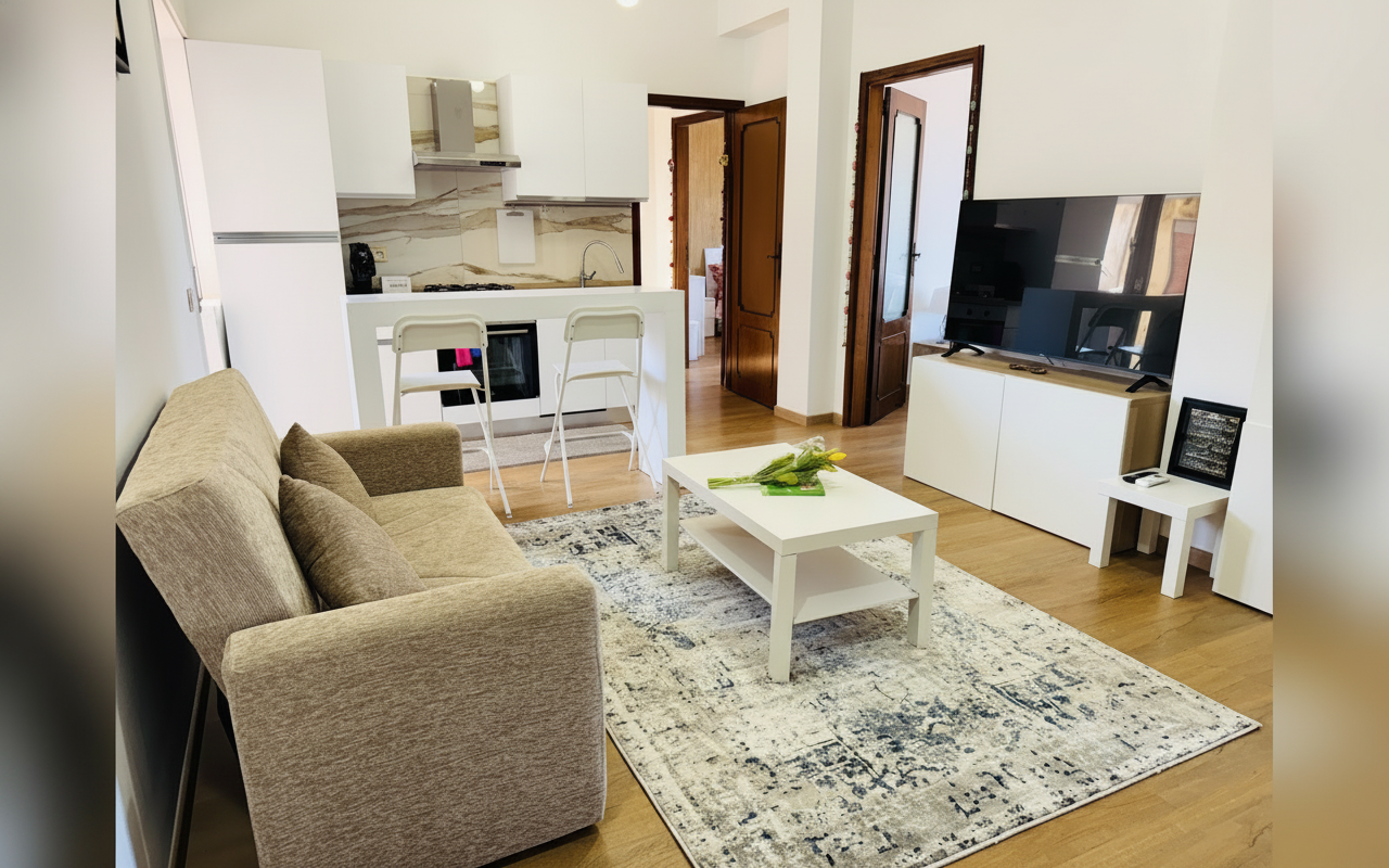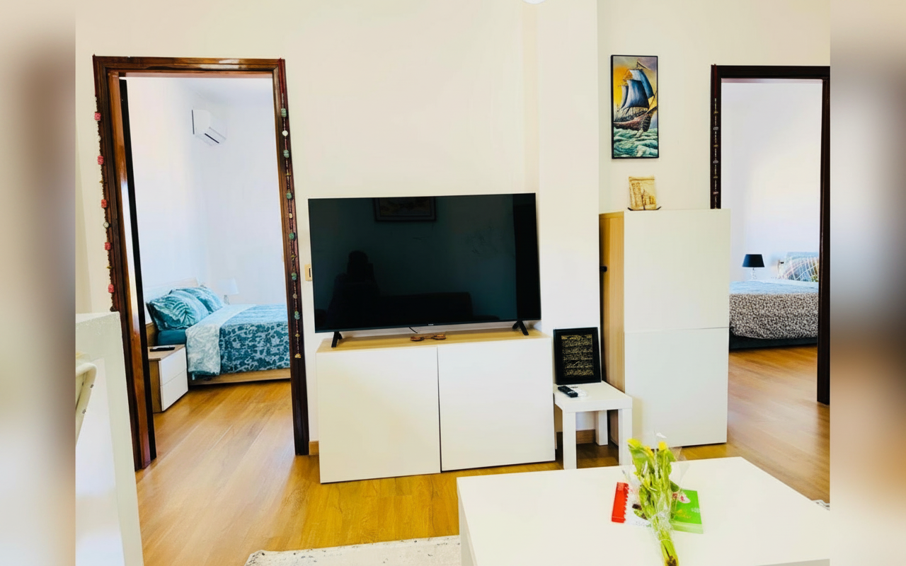 L'appartamento si sviluppa su 110 mq al sesto piano ed è composto da tre ampie camere matrimoniali, un soggiorno con divano letto e cucina completa. Ideale per gruppi o famiglie fino a 8 persone, offre spazi confortevoli e ben arredati con attenzione al dettaglio. La presenza di aria condizionata, riscaldamento, terrazza e balcone rende il soggiorno piacevole in tutte le stagioni. Perfetto per chi vuole vivere Catania da vicino, con la comodità di parcheggio gratuito e ascensore.