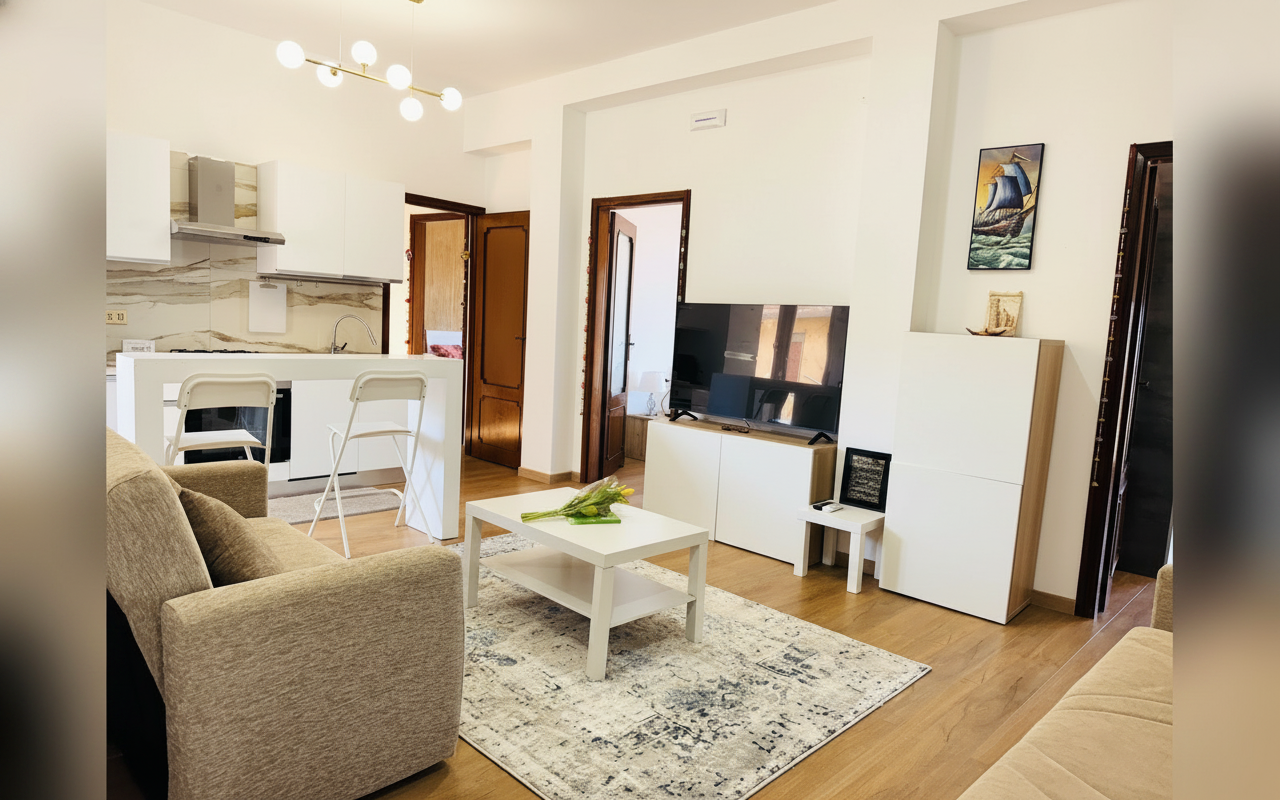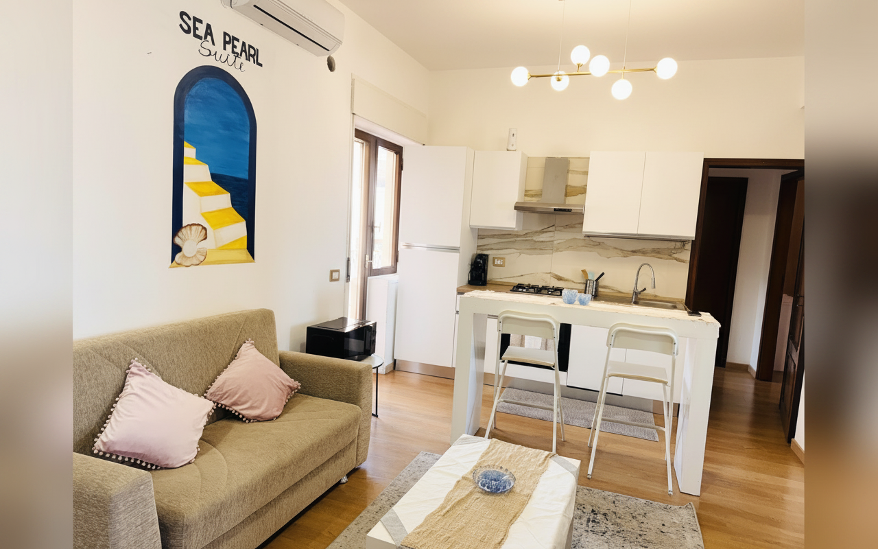 Sea Pearl Suite è un elegante appartamento di 110 mq situato al sesto piano di un palazzo con ascensore, nel centro di Catania, a pochi passi dalle principali attrazioni della città. Con tre camere matrimoniali e un soggiorno con divano letto, è la soluzione ideale per famiglie numerose o gruppi di amici che desiderano vivere l'atmosfera vibrante del barocco catanese. Dotato di cucina completa, aria condizionata, Wi-Fi e terrazza, offre ogni comfort per un soggiorno rilassante. La posizione strategica consente di esplorare facilmente il cuore di Catania, dalla maestosa Piazza Duomo al suggestivo lungomare Ionio, con la comodità del parcheggio gratuito e dei servizi moderni. Qui troverete un'atmosfera accogliente e funzionale, perfetta per godere appieno del fascino siciliano con stile e autonomia.