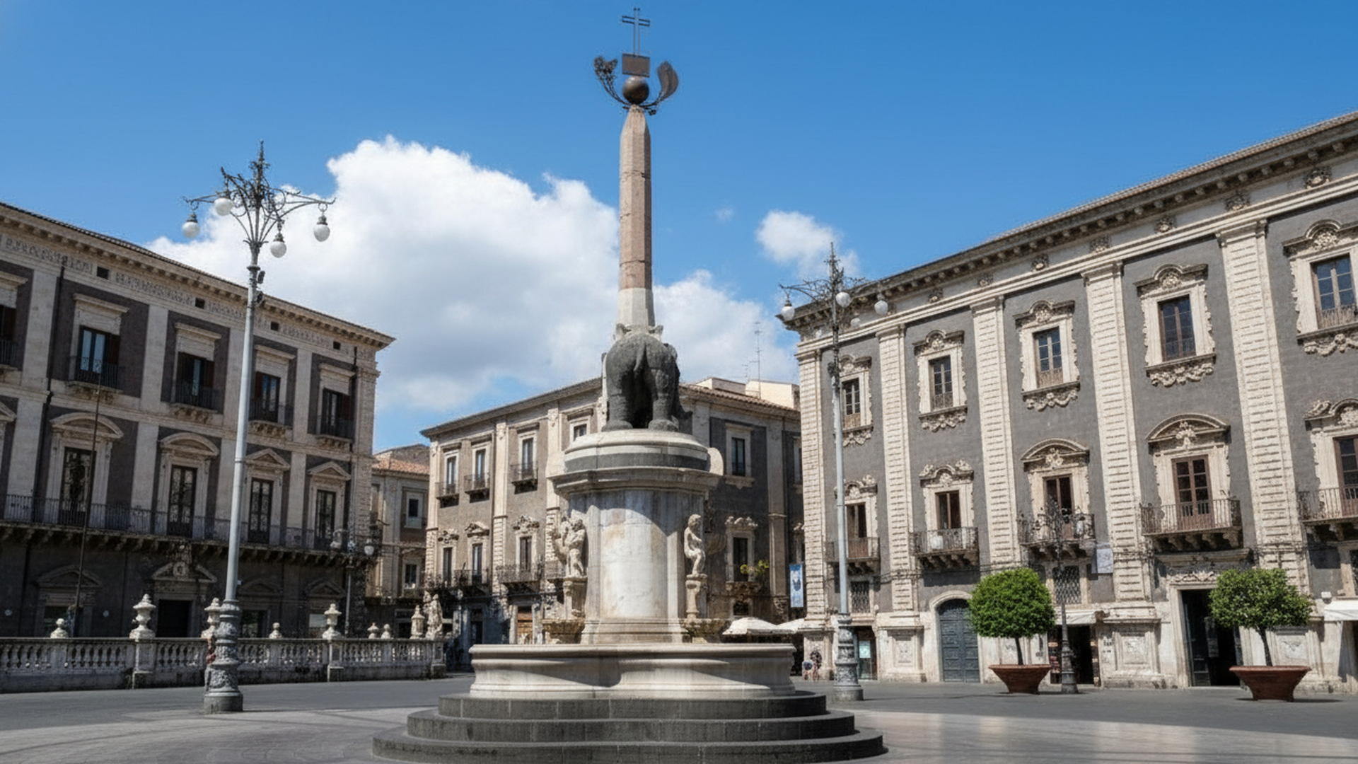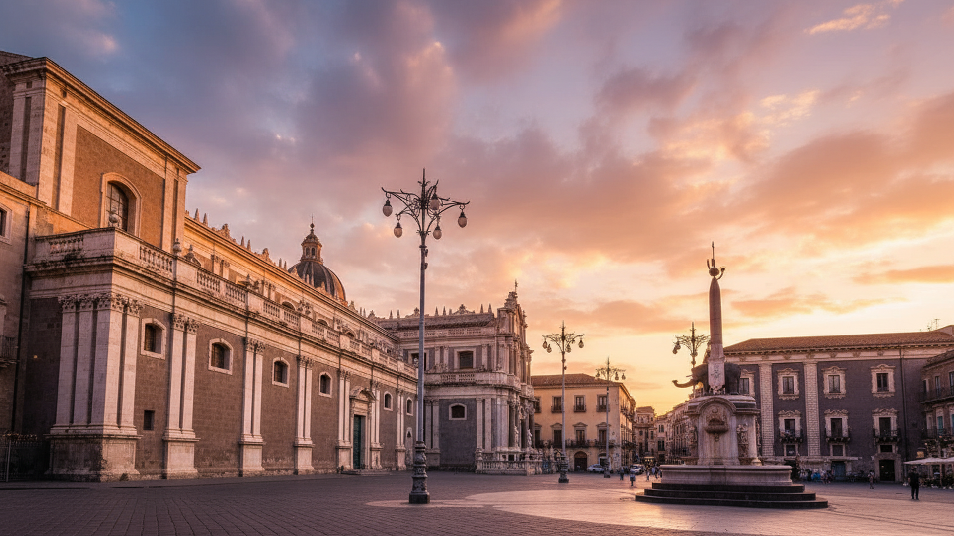Il cuore pulsante della città con la sua scenografica fontana dell'Elefante e gli edifici barocchi circostanti, simbolo della storia e dell'identità catanese.